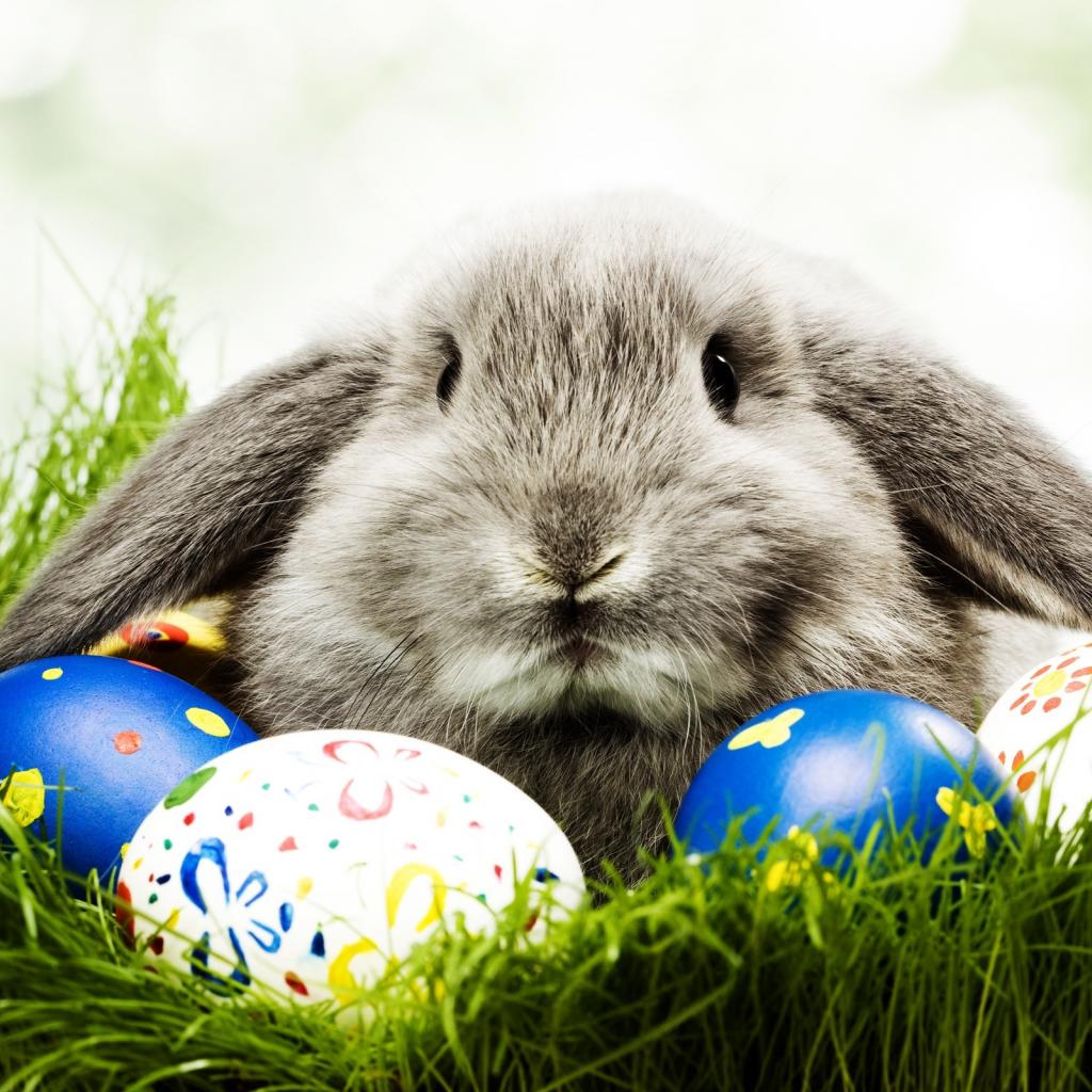 Wallpaper Green grass, Easter eggs, Easter rabbit