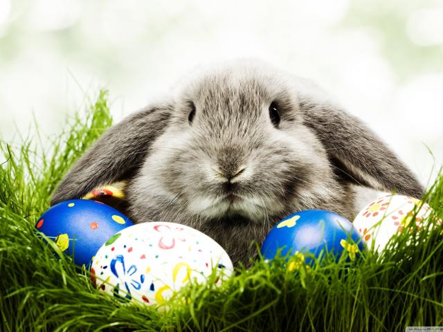 Wallpaper Green grass, Easter eggs, Easter rabbit