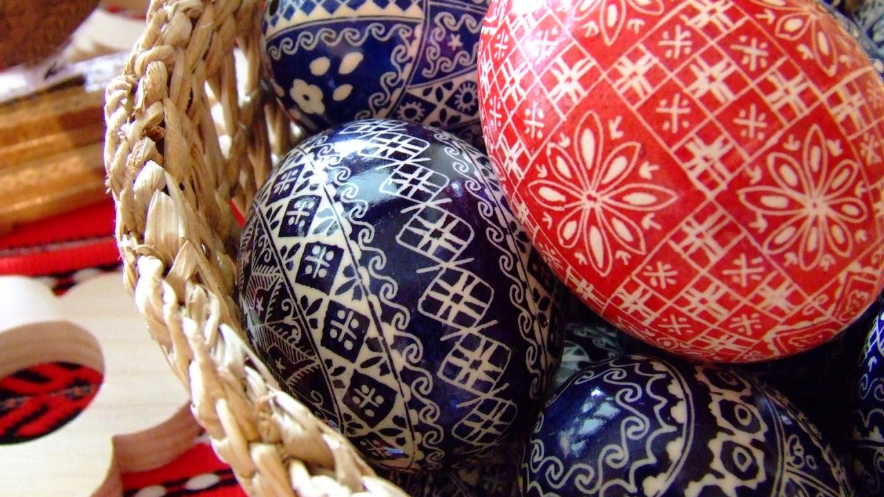 Wallpaper The blue and red Easter eggs