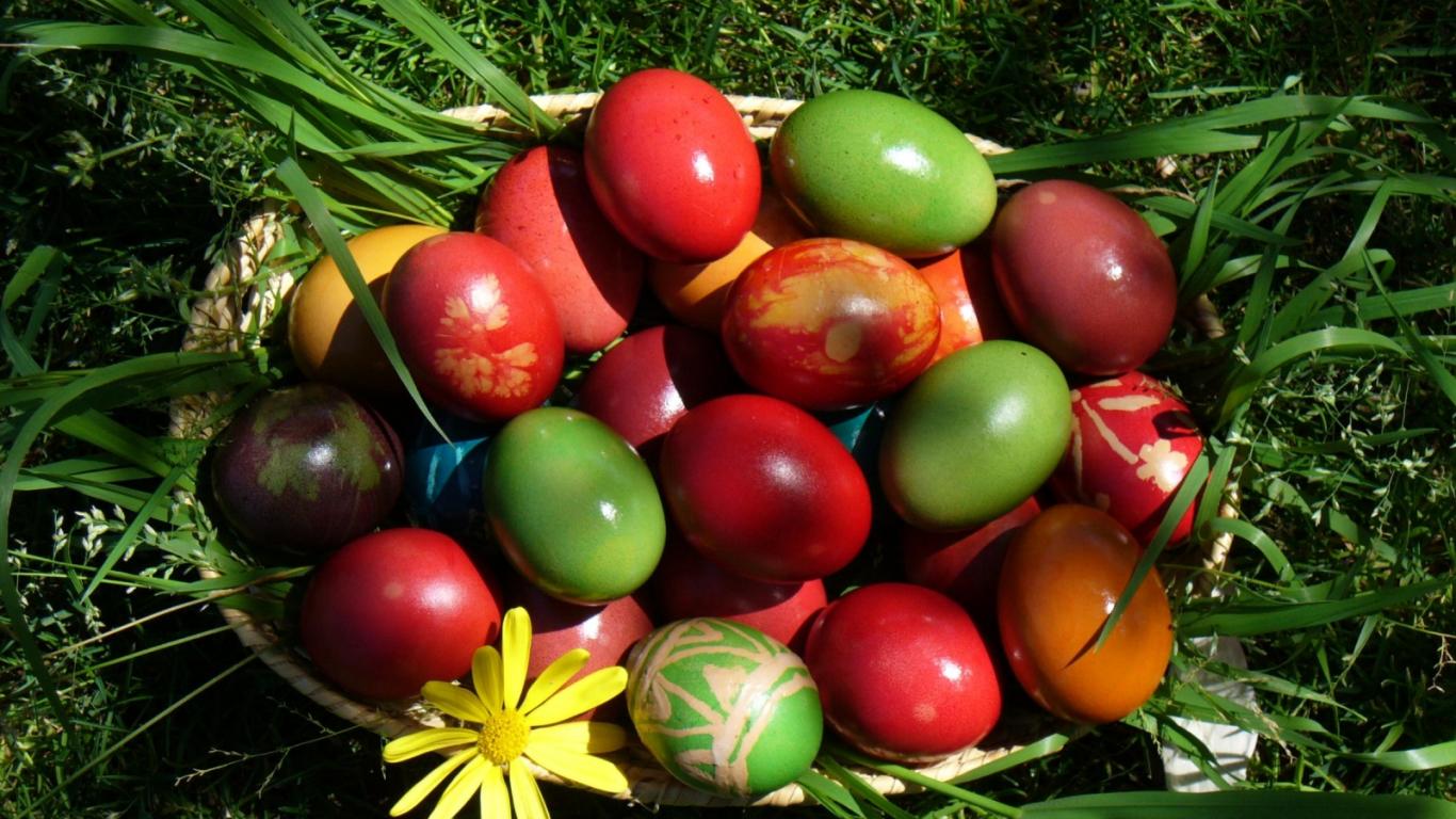 Wallpaper Green grass, Easter eggs, Easter rabbit