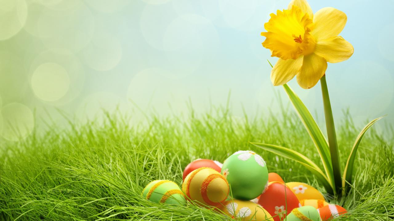 Wallpaper Eggs and yellow flower for Easter