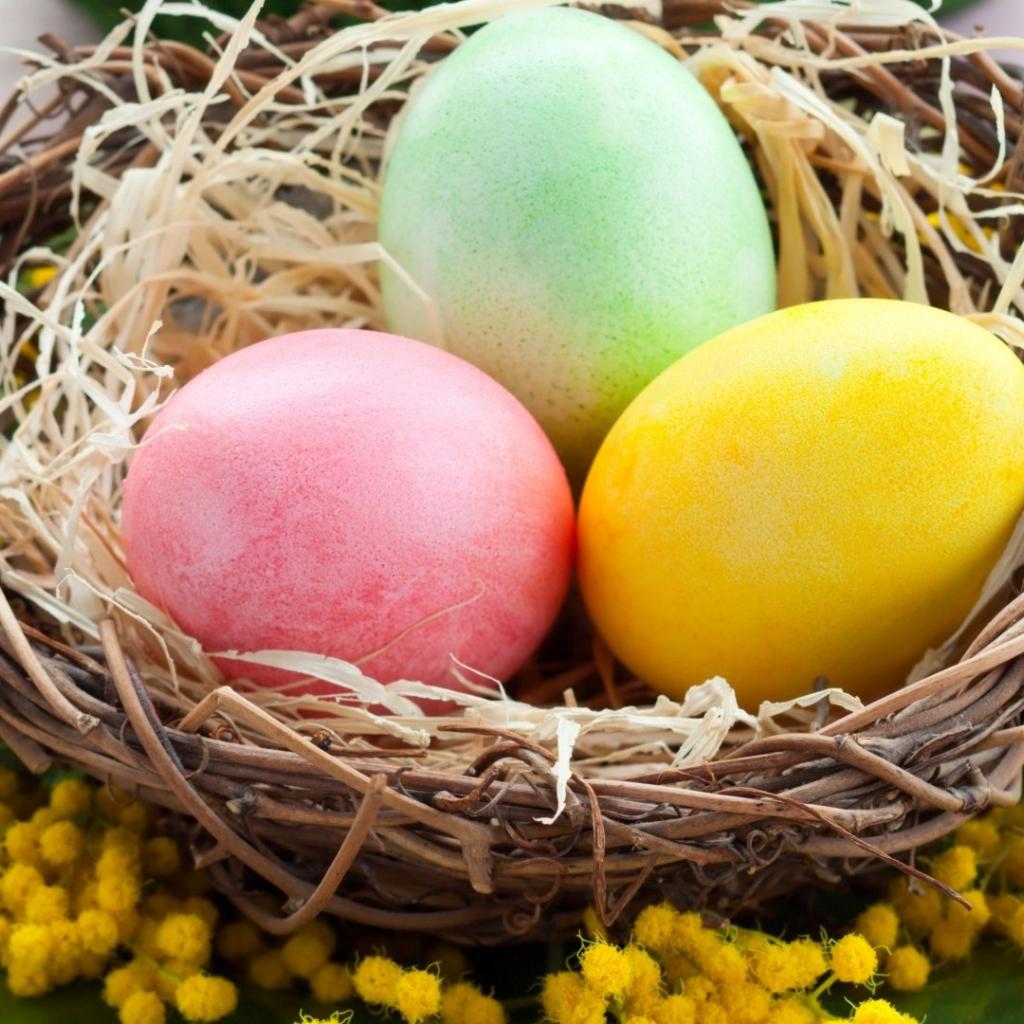 Wallpaper Eggs in a wicker plate on Easter