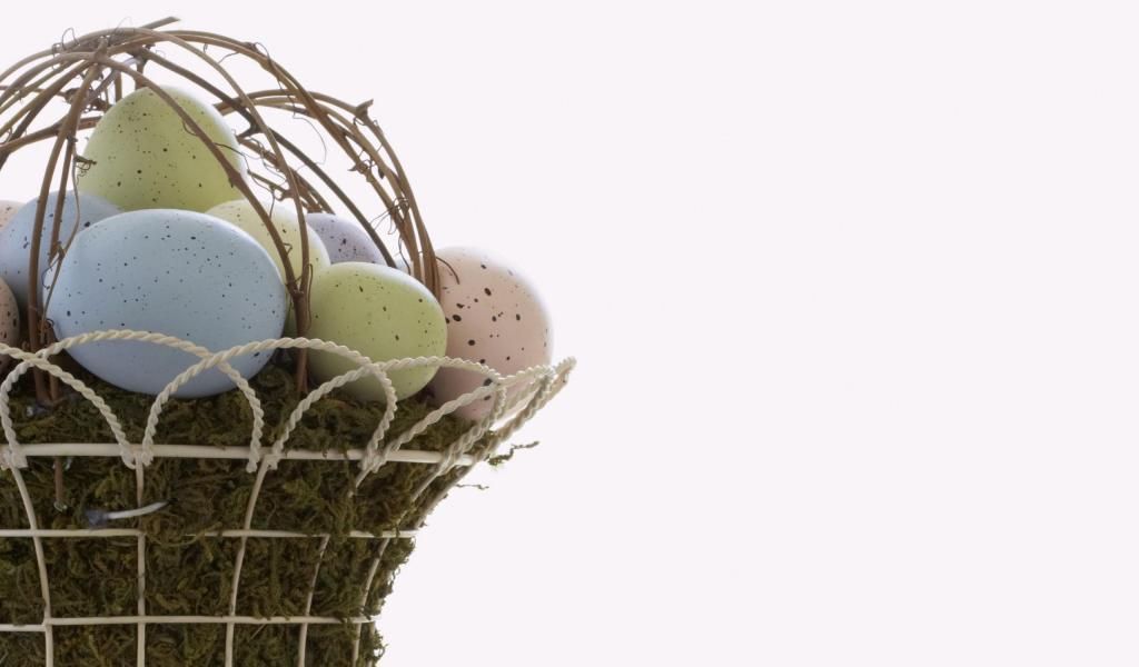 Wallpaper Eggs in a basket on a white Easter