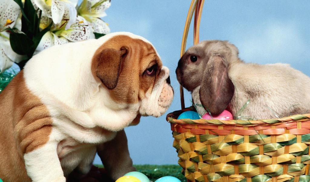» Wallpaper Dog and rabbit for Easter