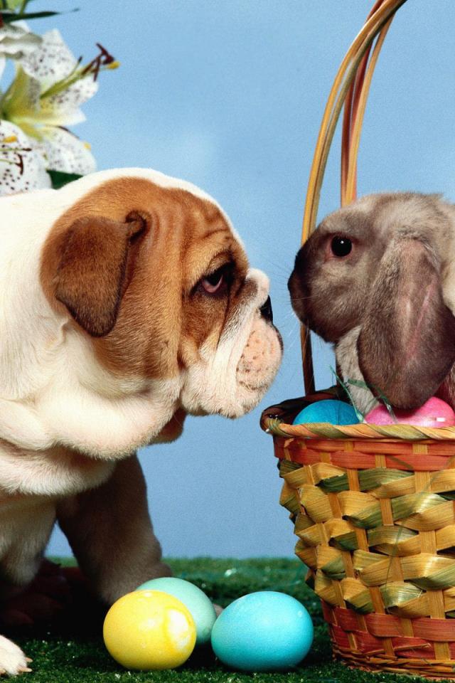 Wallpaper Dog and rabbit for Easter