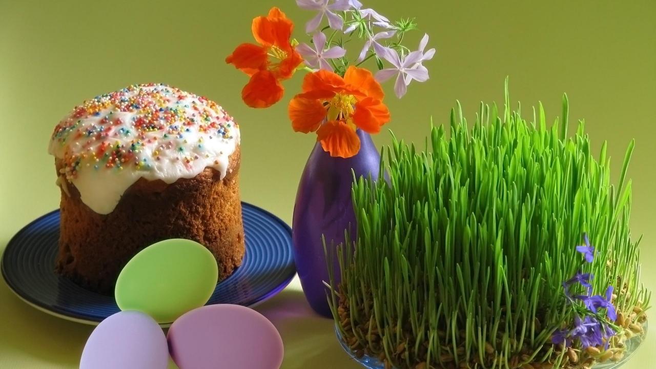 Wallpaper Green grass, Easter eggs, Easter rabbit