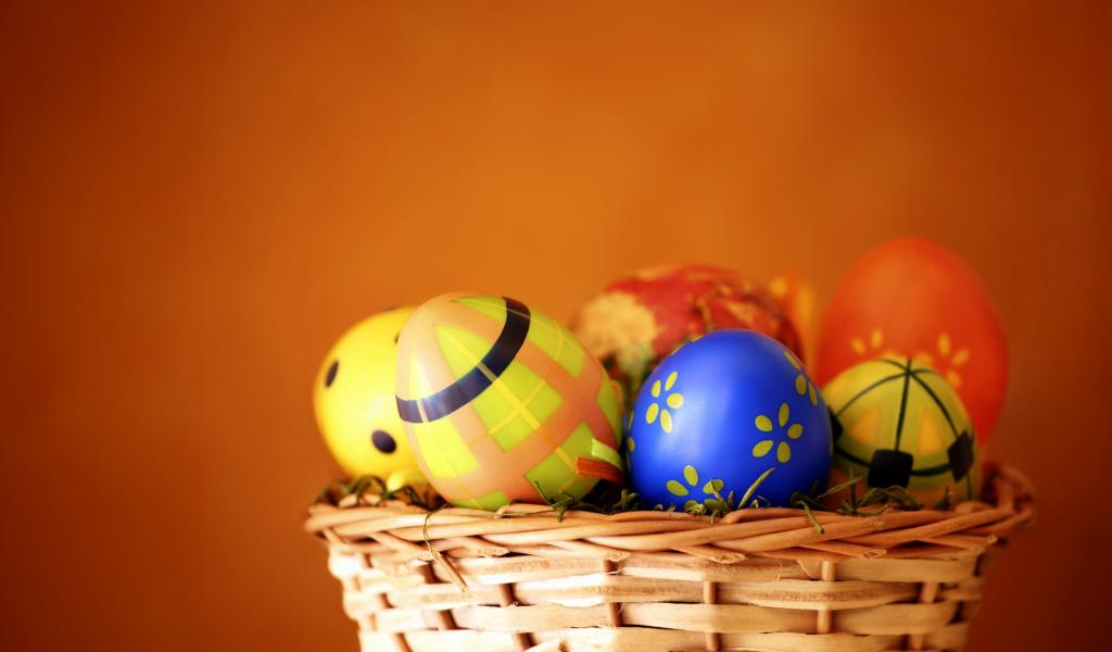 Wallpaper Basket of eggs on orange background for Easter