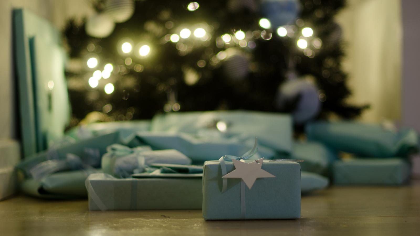 Wallpaper Christmas gifts on the floor
