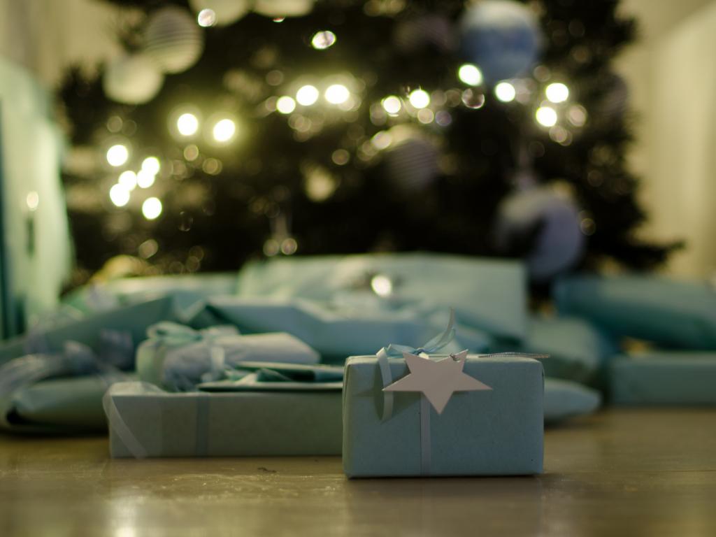 Wallpaper Christmas gifts on the floor