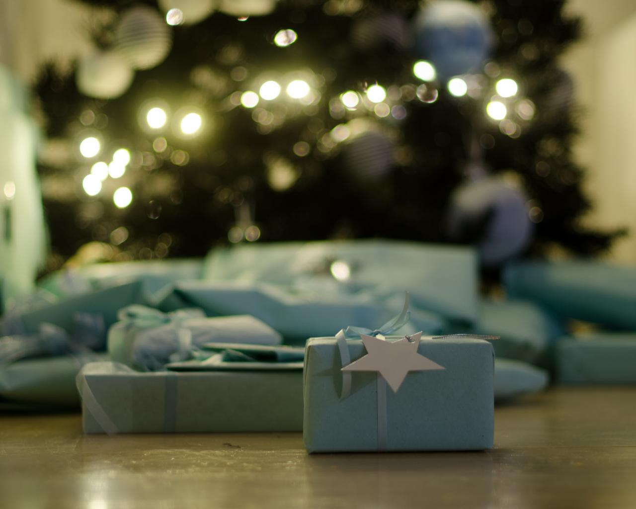 Wallpaper Christmas gifts on the floor