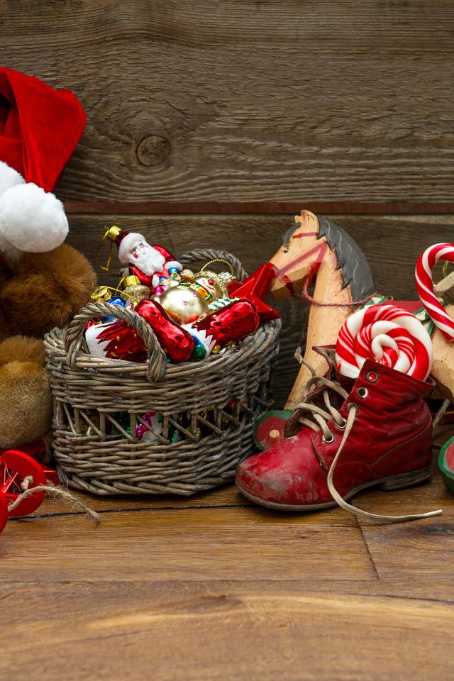 Wallpaper Red Christmas decorations and gifts on Christmas, white background