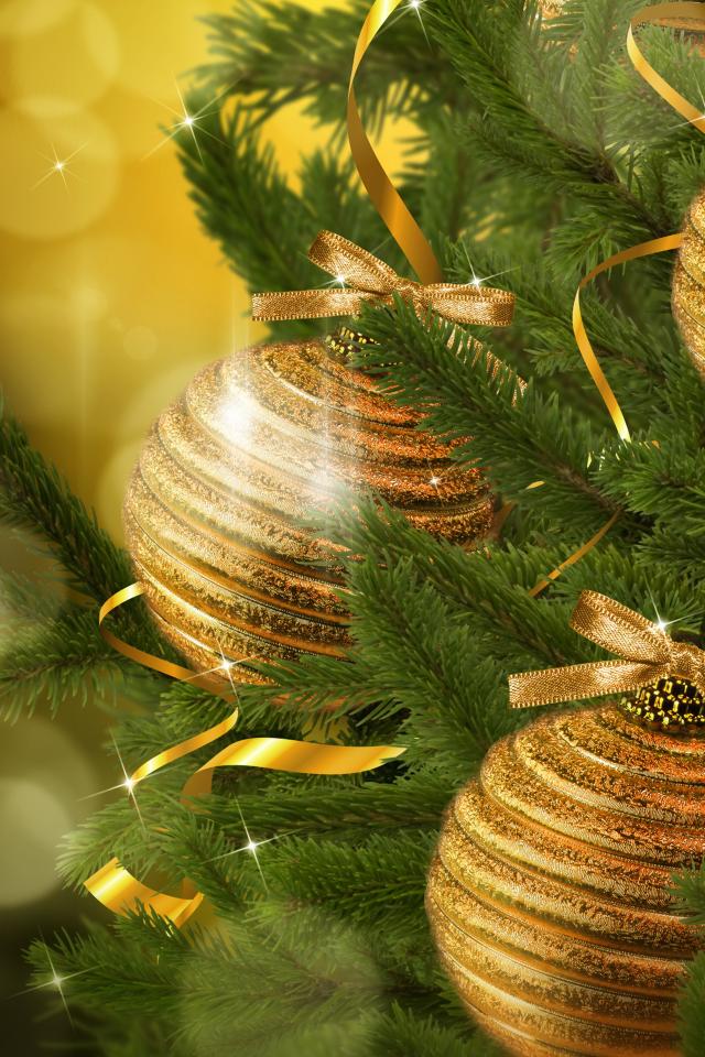 Wallpaper Golden balls and tinsel on the Christmas tree