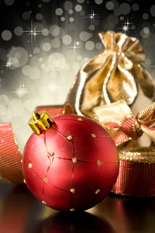Wallpaper Red ball and gold bow