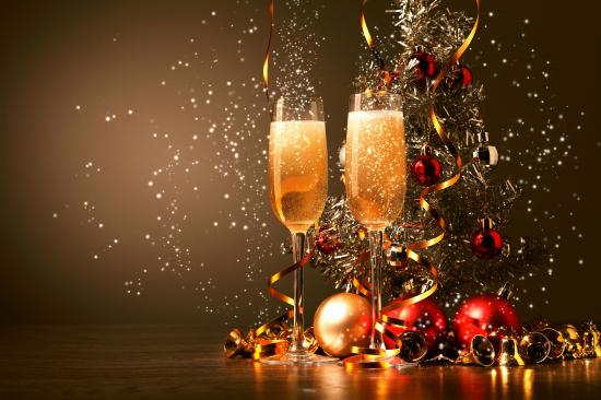 Wallpaper Christmas decorations and champagne