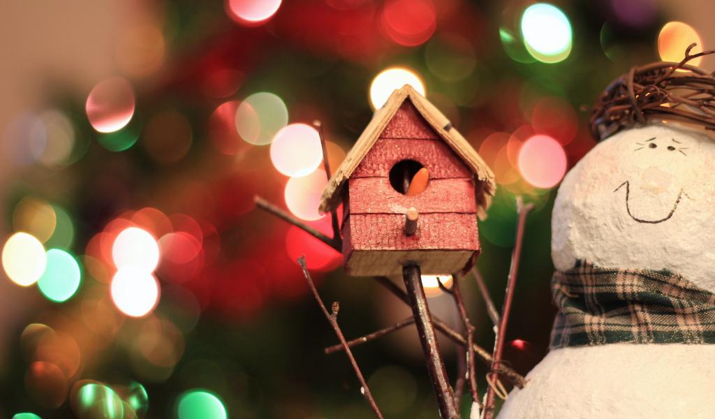 Wallpaper Snowman with bird-house