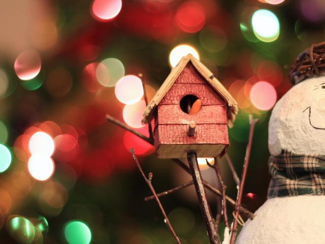 Wallpaper Snowman with bird-house