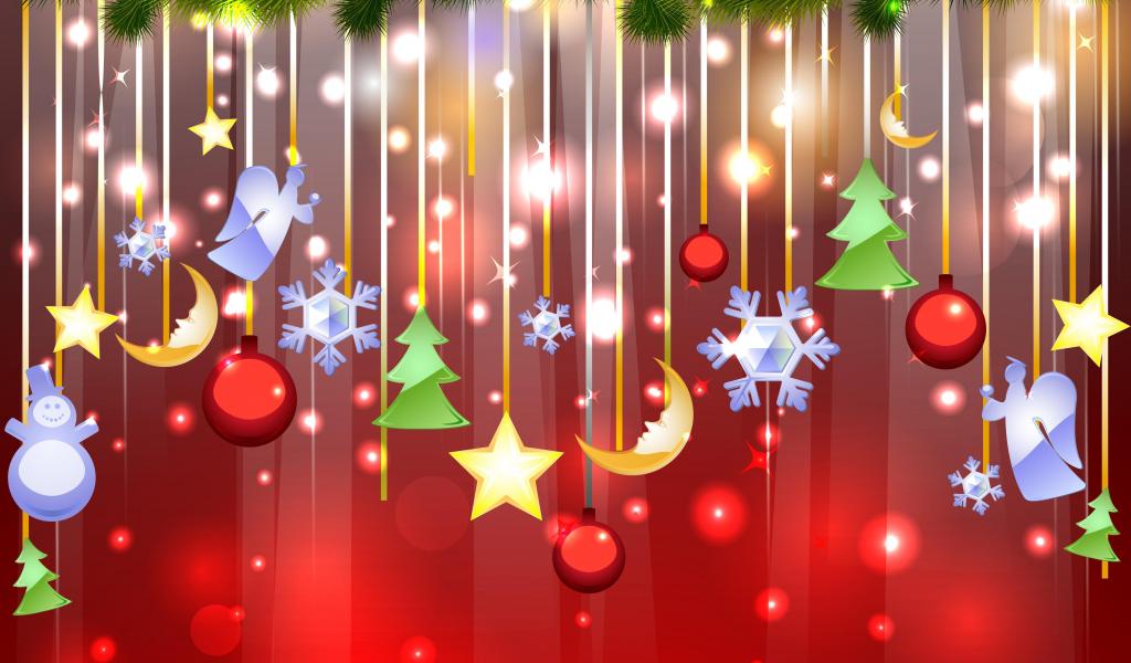 Wallpaper Gift, Red ribbon, A glass of champagne, Balls, Candles , Christmas tree, Santa Claus, Christmas toys, Christmas garland