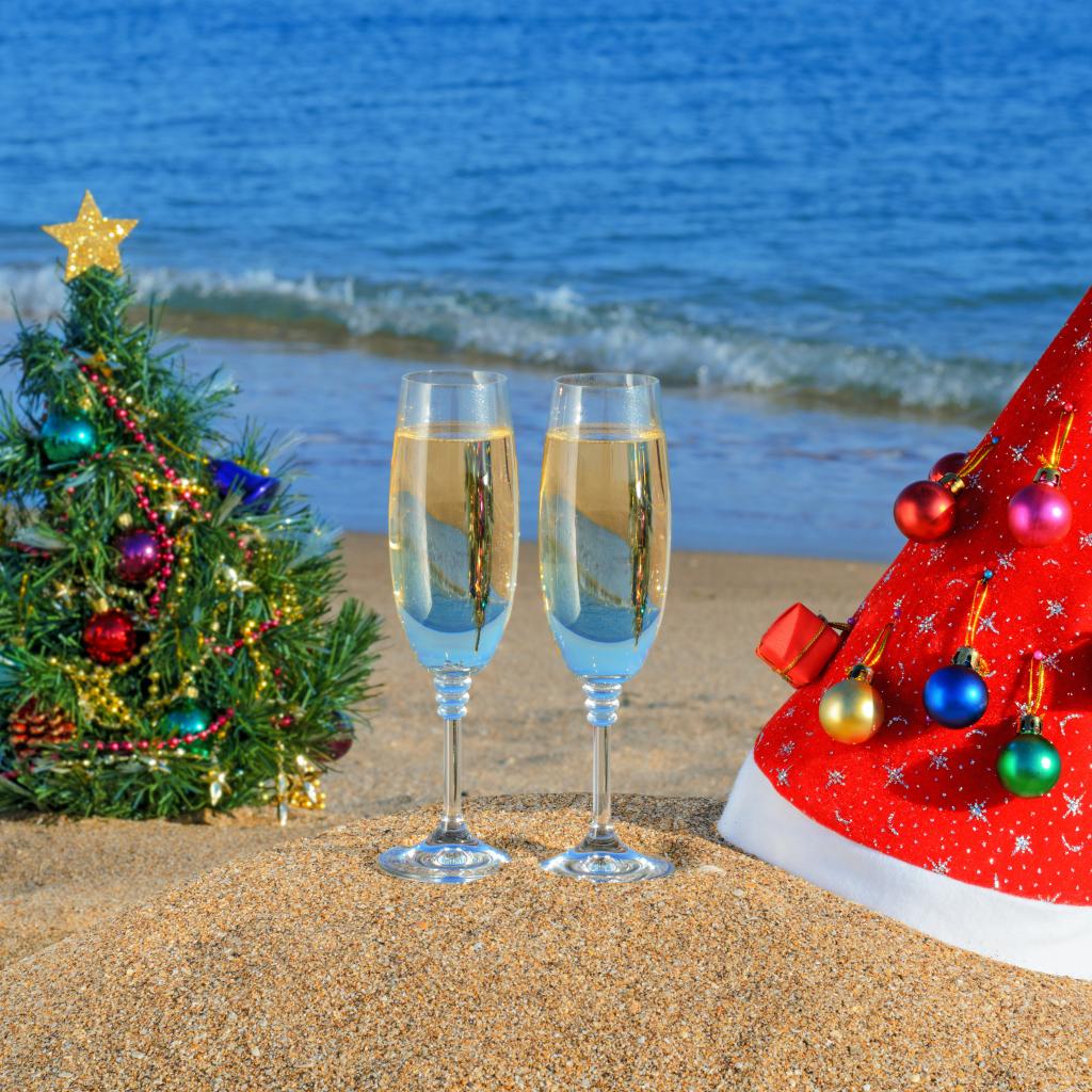 Wallpaper Gift, Red ribbon, A glass of champagne, Balls, Candles , Christmas tree, Santa Claus, Christmas toys, Christmas garland
