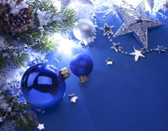 Wallpaper Blue Christmas tree balls on a gray-blue background on Christmas