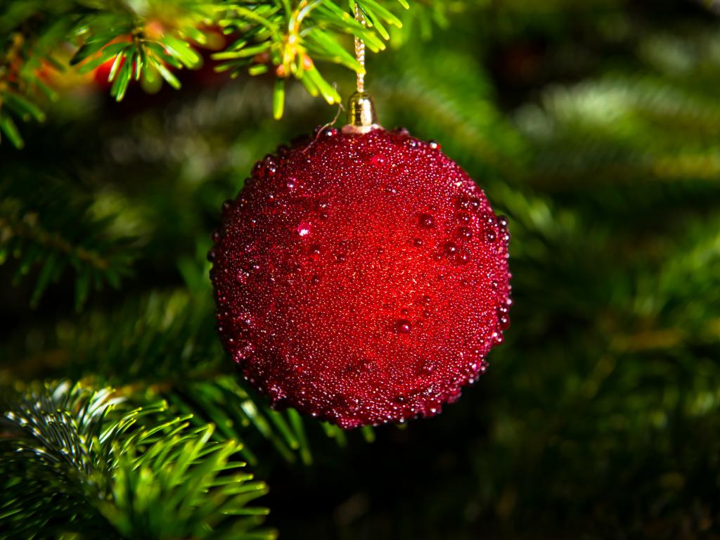 Wallpaper Christmas tree ball and small gift box on Christmas