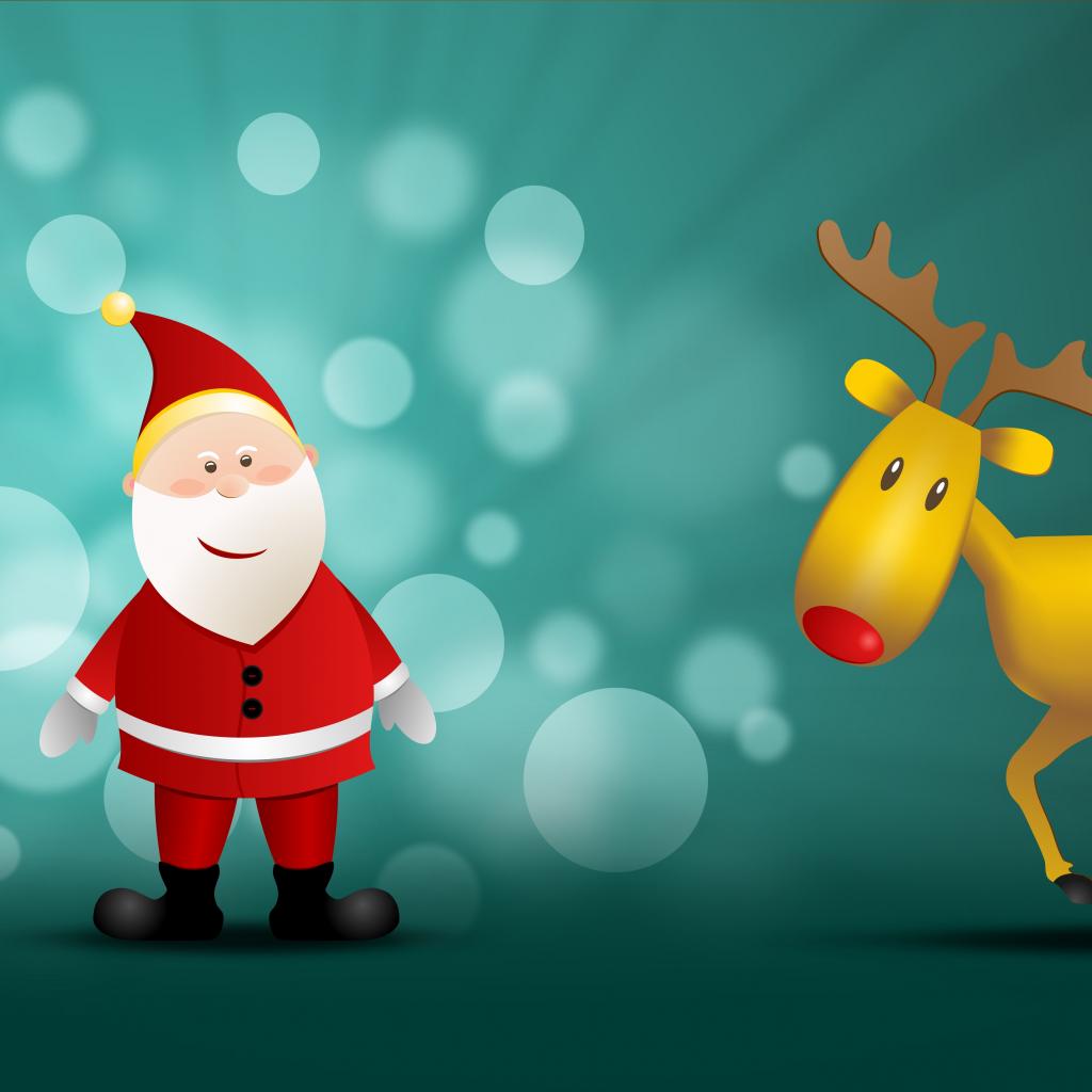 Wallpaper Red and green Christmas tree with deers on a light background on Christmas