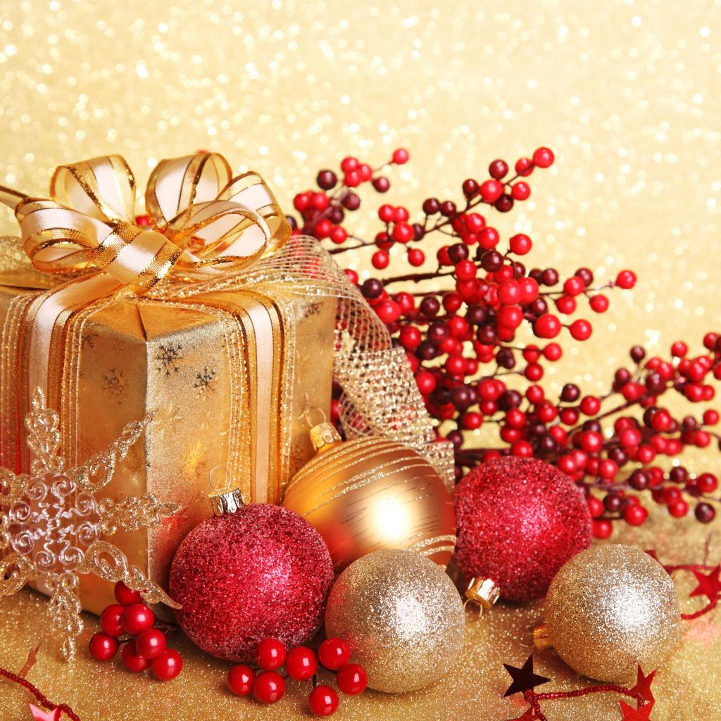 Wallpaper Gift with Christmas toys on Christmas, golden background