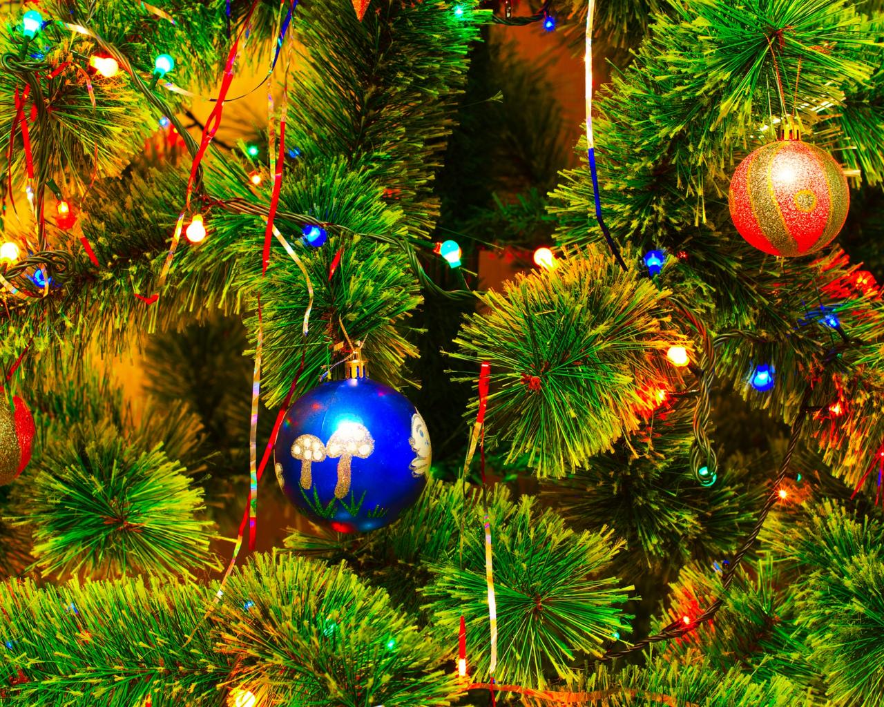 Wallpaper Merry Christmas and Happy New Year 2014 blue Christmas tree toys