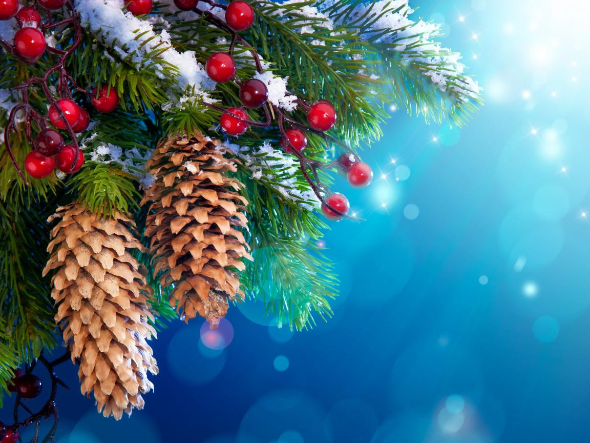 Wallpaper Berries and cones on Christmas tree