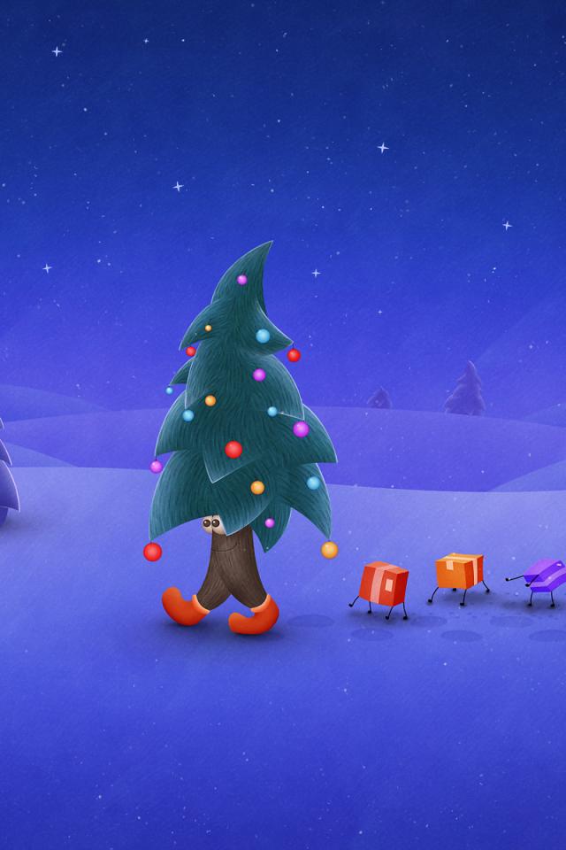 Wallpaper The tree and the gifts with legs