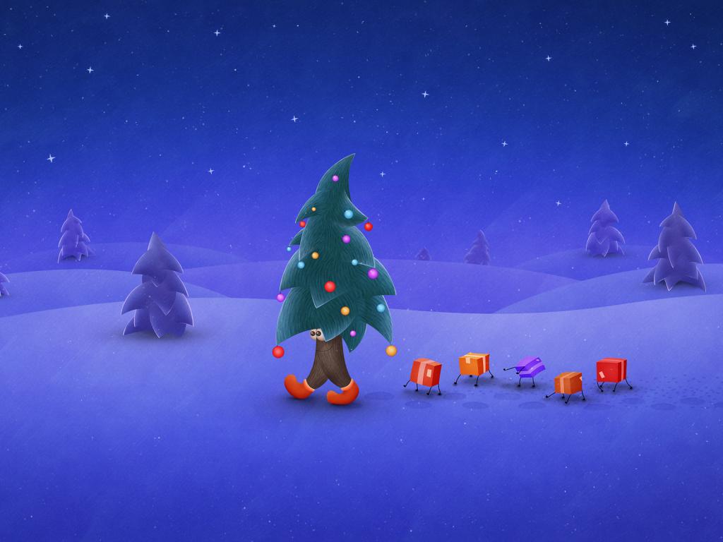 Wallpaper The tree and the gifts with legs
