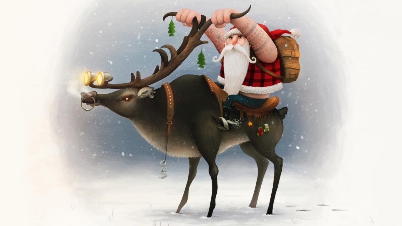 Wallpaper Santa Claus on a deer