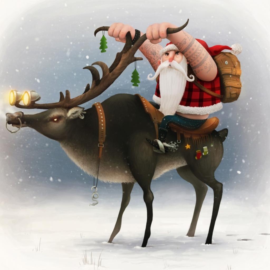 Wallpaper Santa Claus on a deer