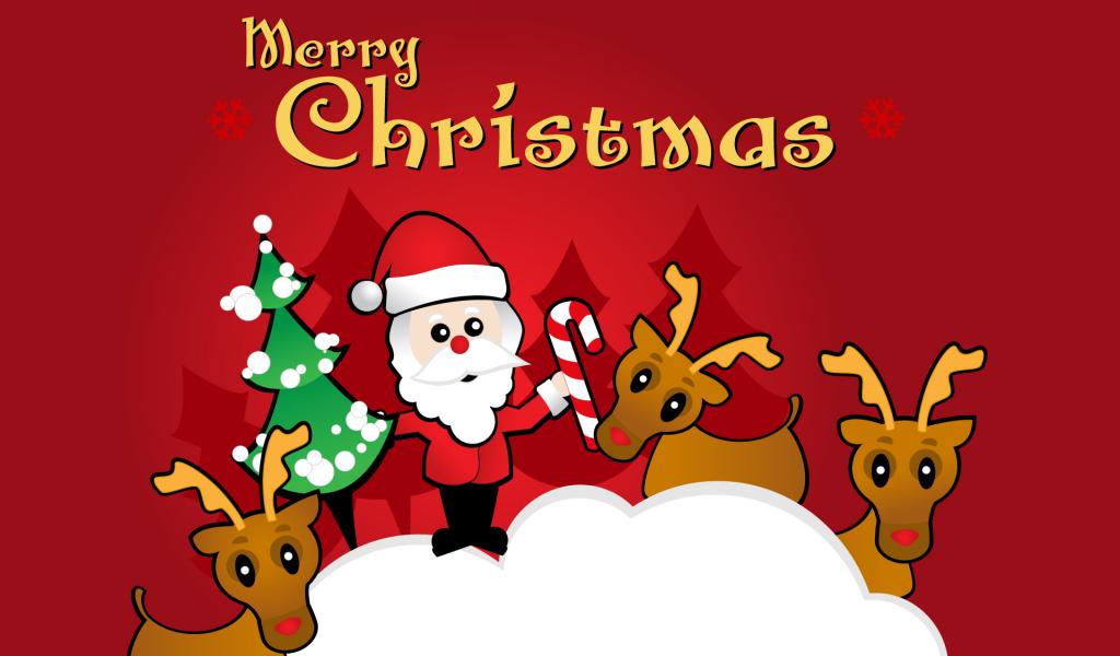 Wallpaper Santa and deer on Christmas