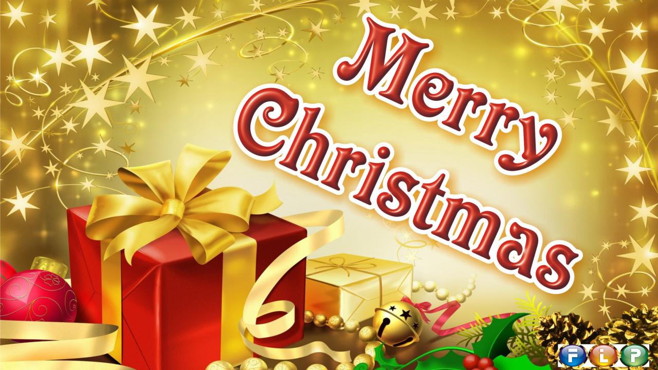 Wallpaper Gift with Christmas toys on Christmas, golden background