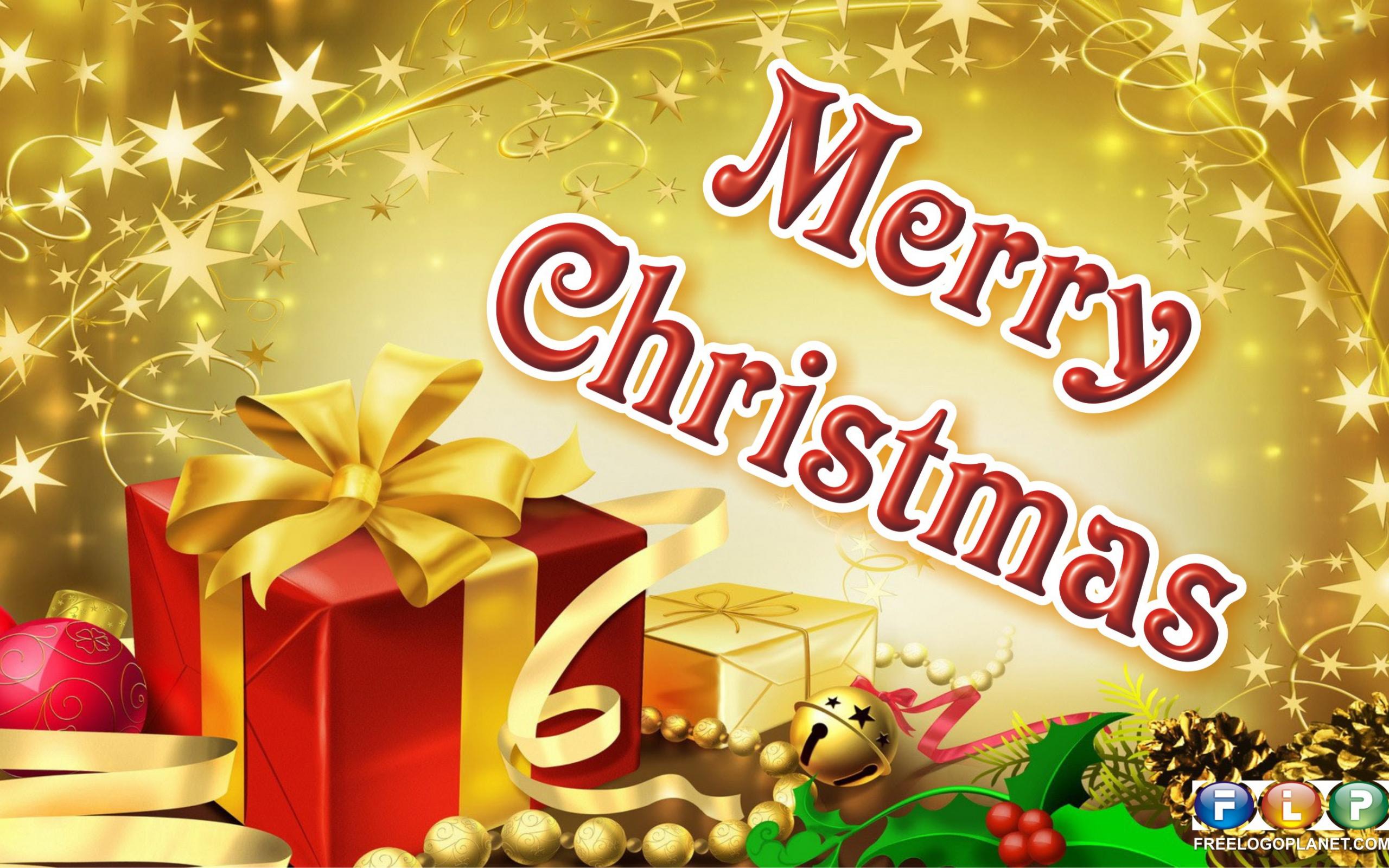 Wallpaper Gift with Christmas toys on Christmas, golden background