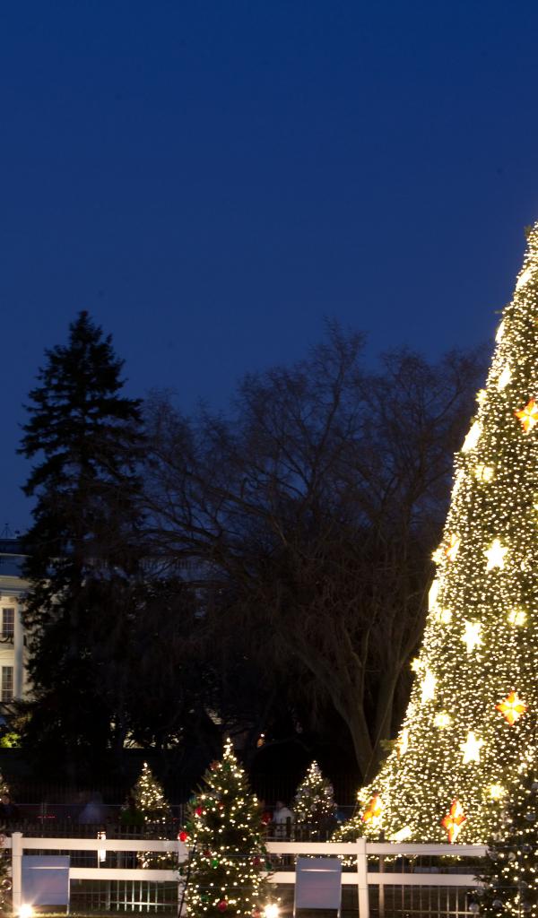 Wallpaper Large Christmas tree in the city on Christmas