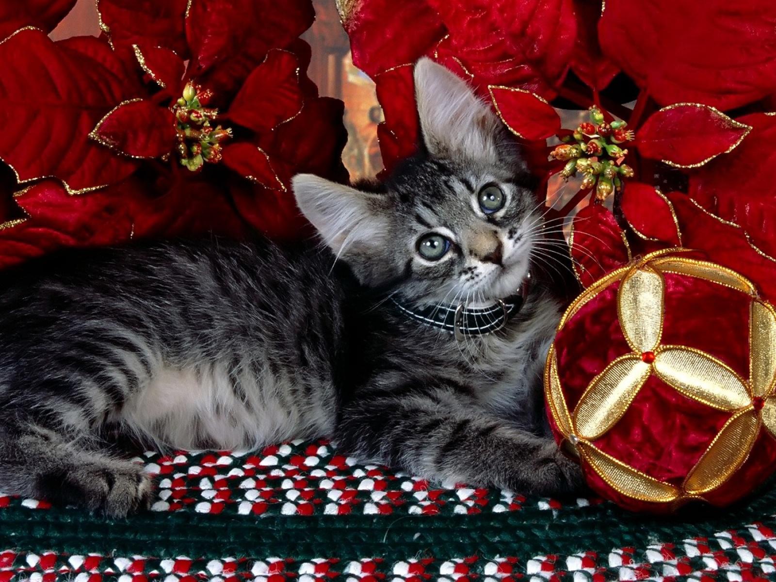 Wallpaper Gray kitten on Christmas
