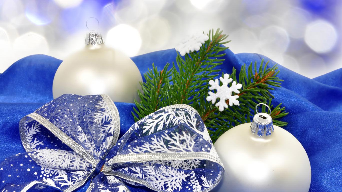 Wallpaper Ribbon and white Christmas tree balls on Christmas