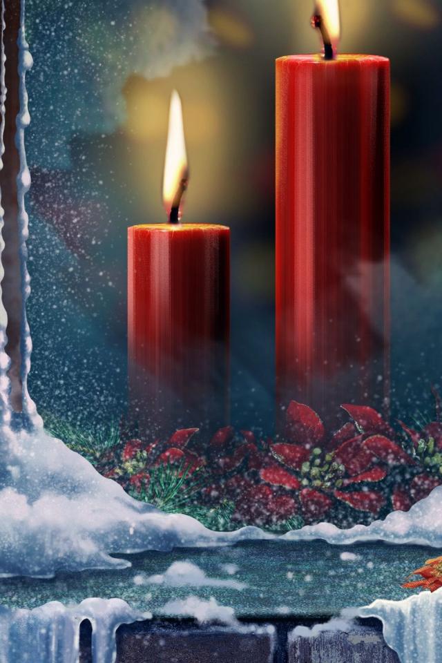 Wallpaper Burning candles outside the window on Christmas