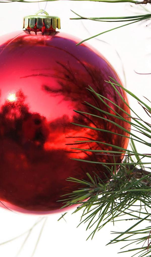 Wallpaper Red Christmas tree ball on a green background on Christmas