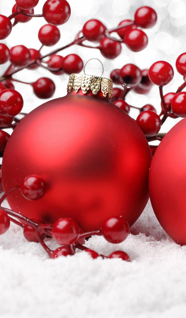 Wallpaper Red decorations on the snow on Christmas