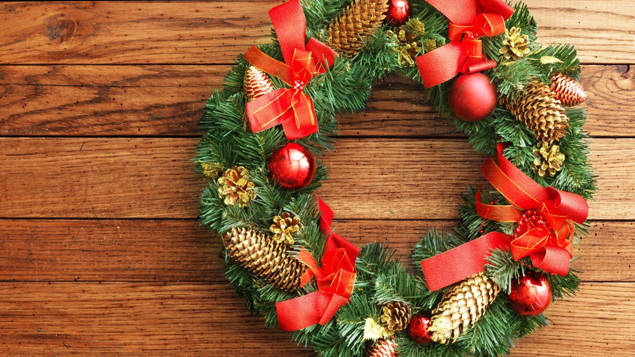 Wallpaper Wreath with pine cones on a white background on Christmas