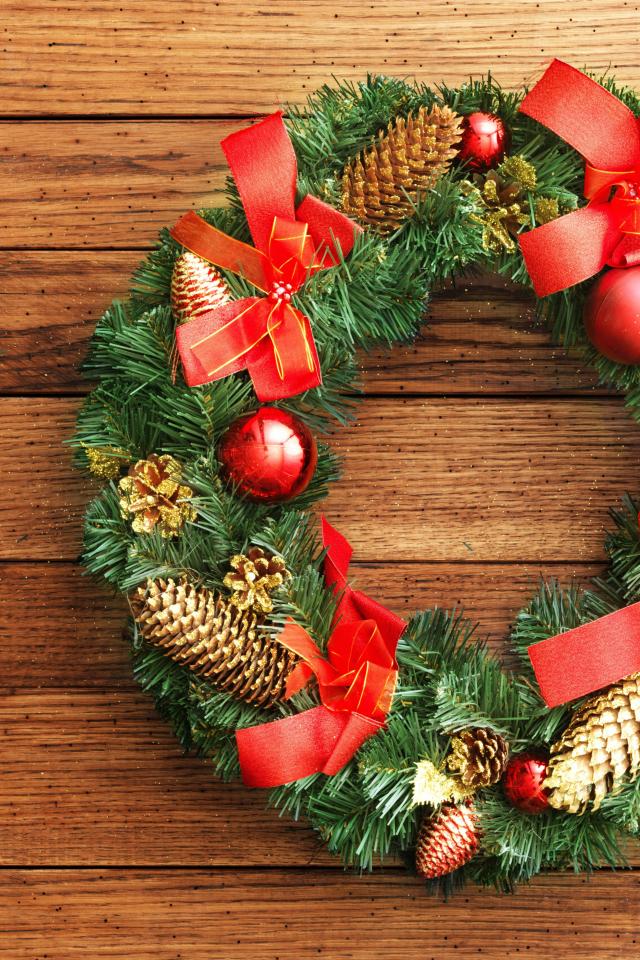 Wallpaper Wreath with pine cones on a white background on Christmas