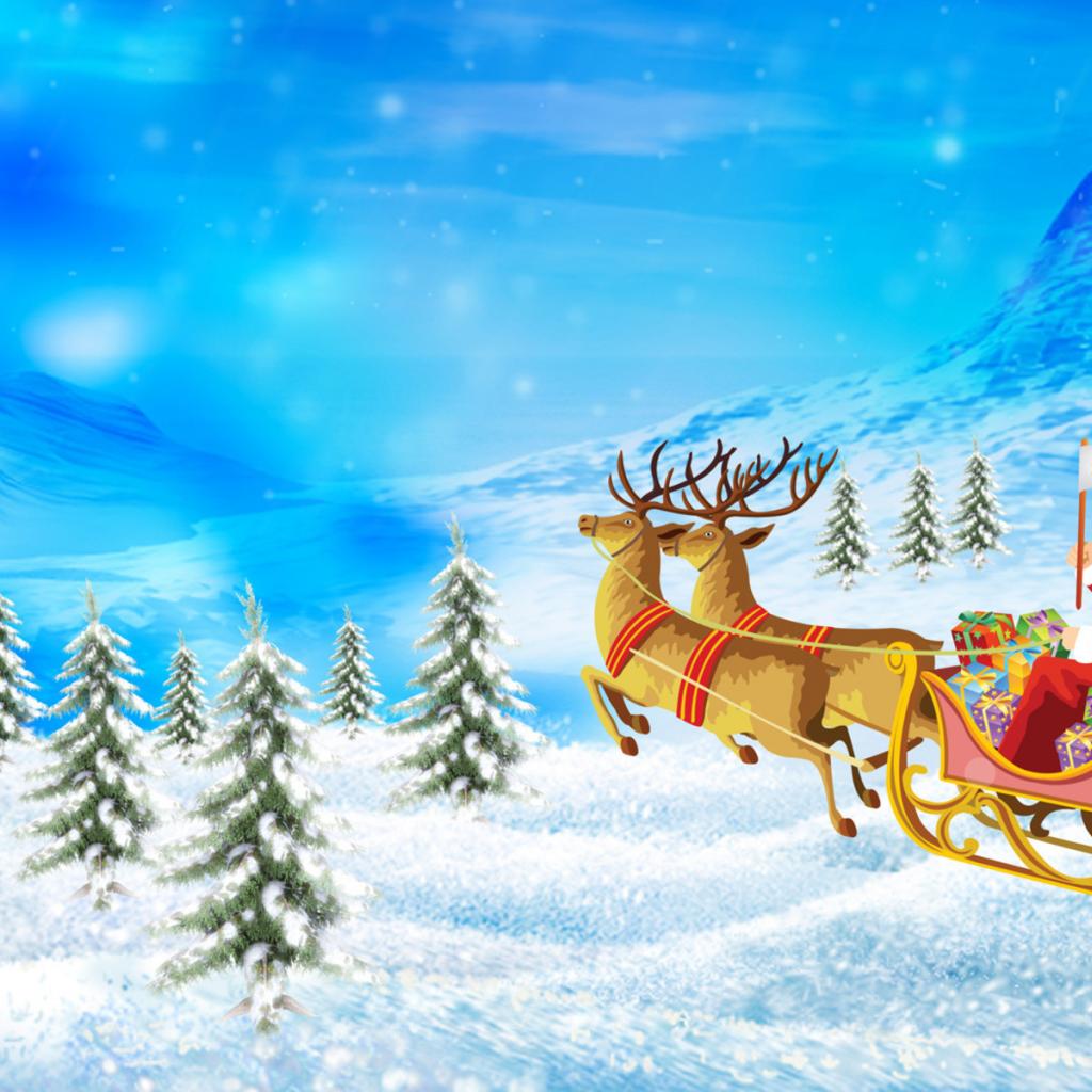 Wallpaper Santa Claus in harness with deers on Christmas
