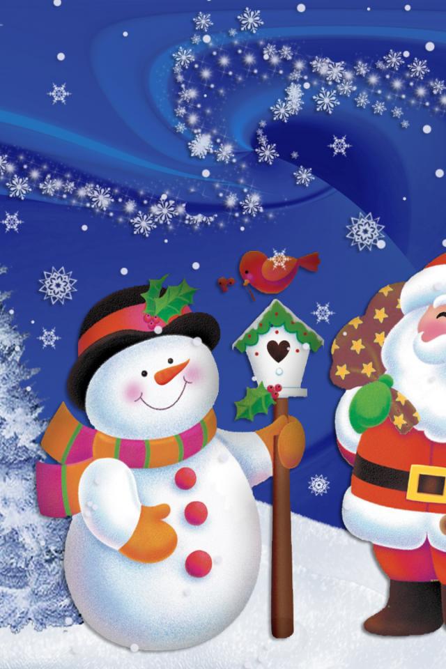 Wallpaper Funny Santa Claus and snowman on Christmas