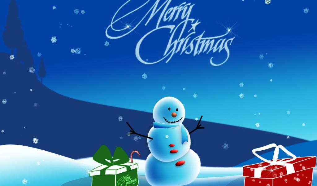 Wallpaper Snowman with gifts on Christmas