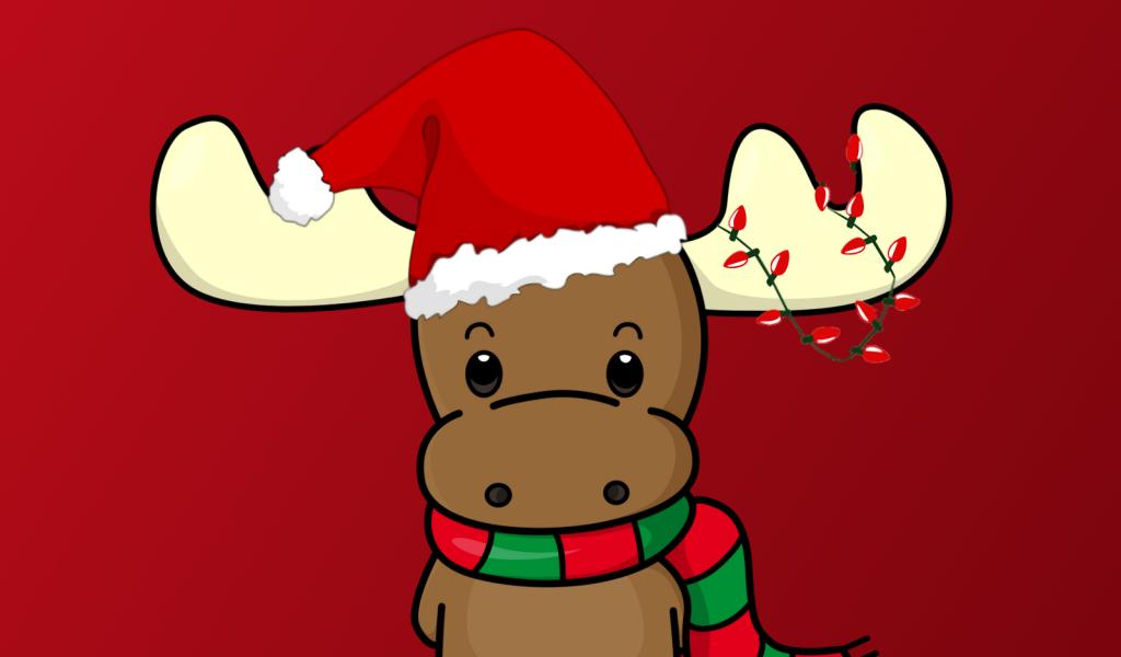 Wallpaper Funny deer near the Christmas tree on Christmas