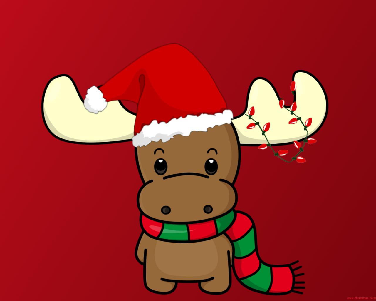 Wallpaper Funny deer near the Christmas tree on Christmas