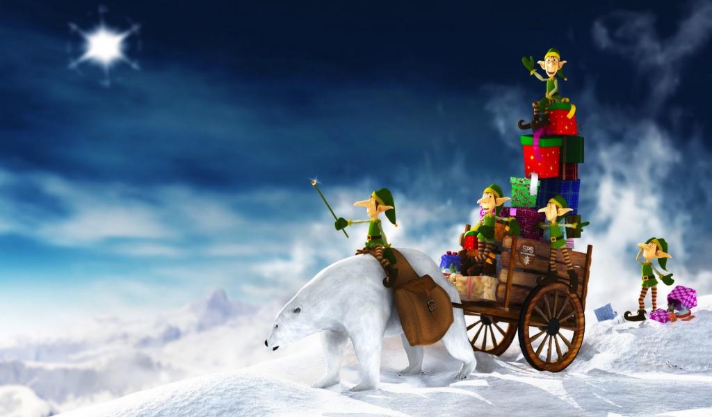 Wallpaper Gnomes on a white bear on Christmas