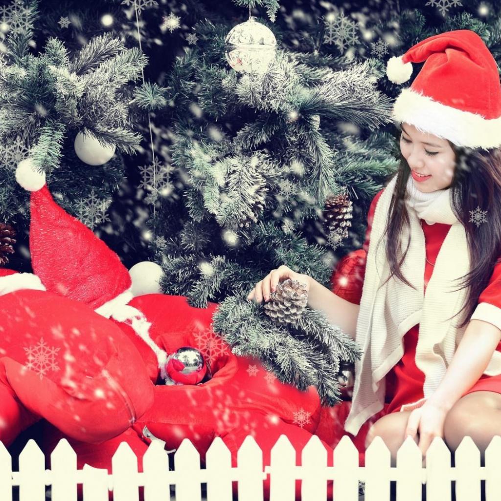 Wallpaper Girl dressed as Santa Claus